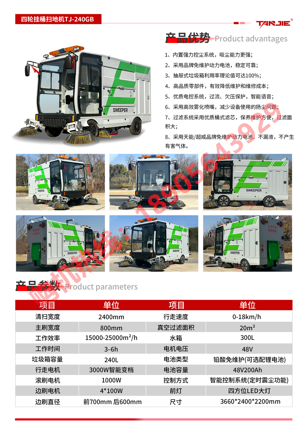 郴州坦洁四轮挂桶扫地车TJ-240GT