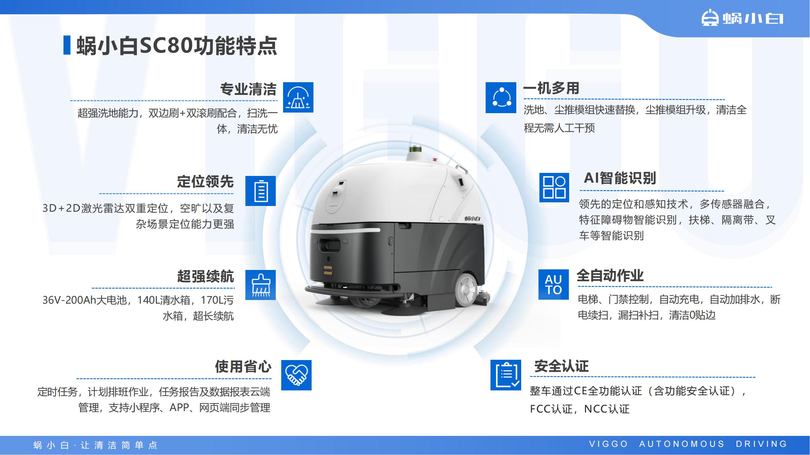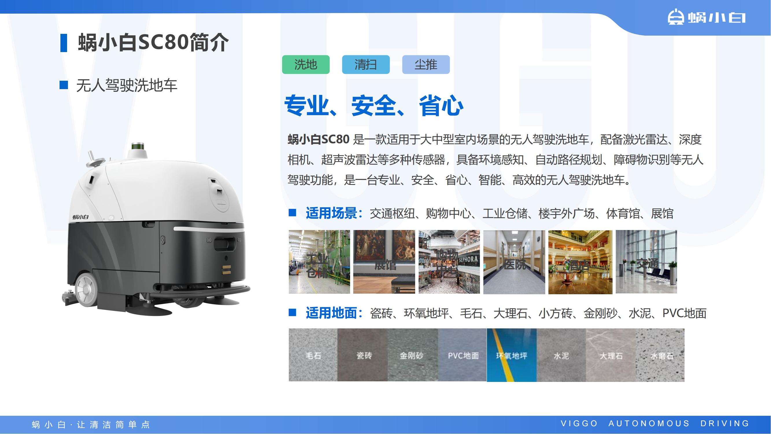 蜗小白SC80 是一款适用于大中型室内场景的无人驾驶洗地车,配备激光雷达、深度