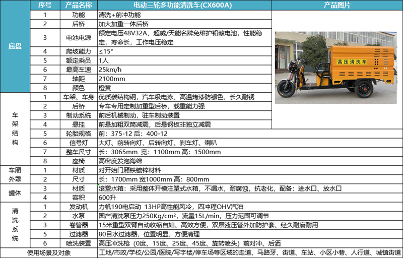郴州电动三轮高压冲洗车CX600