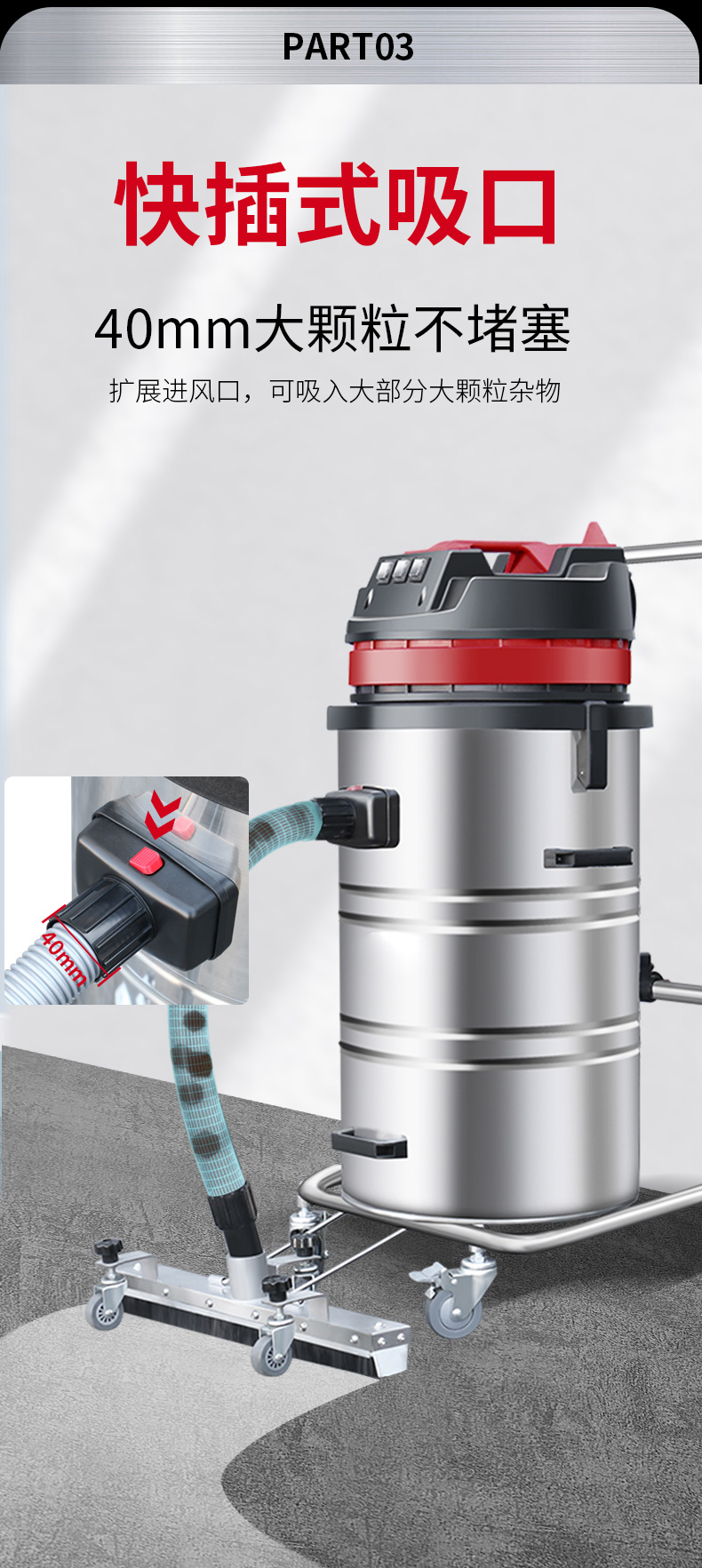 郴州坦洁220V单桶不锈钢工业吸尘器X3系列