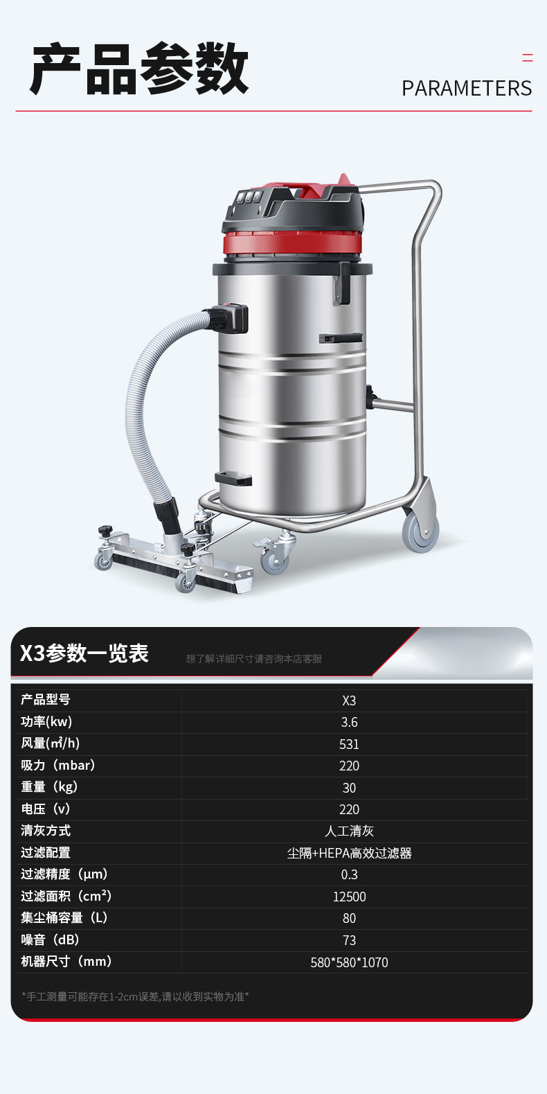 郴州坦洁380V双桶不锈钢工业吸尘器X7系列