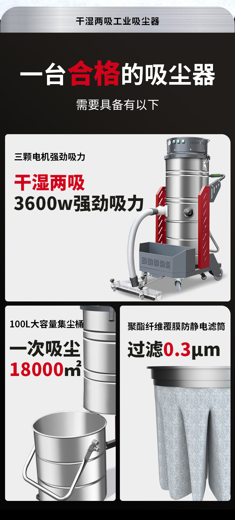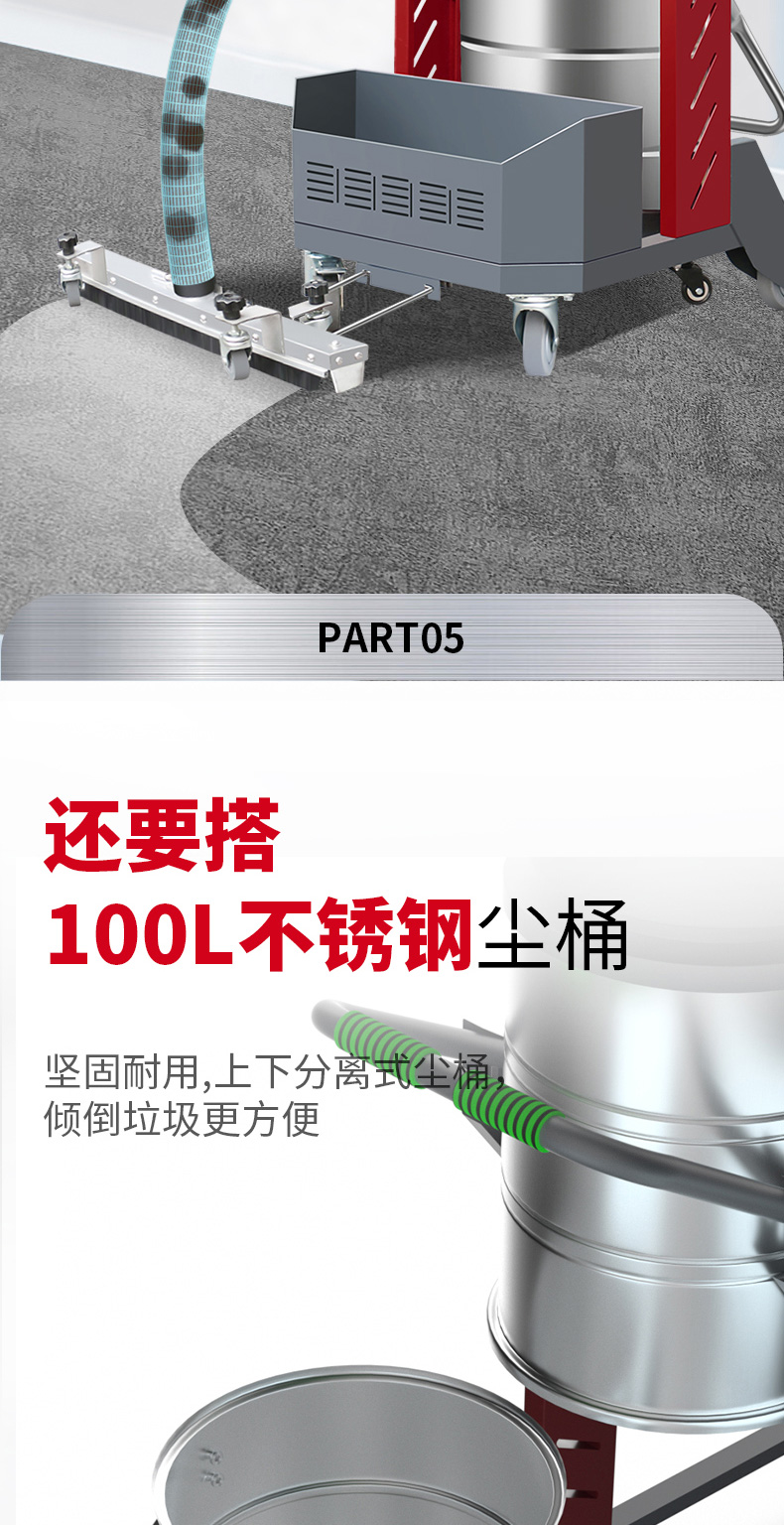 郴州坦洁380V双桶不锈钢工业吸尘器X7系列