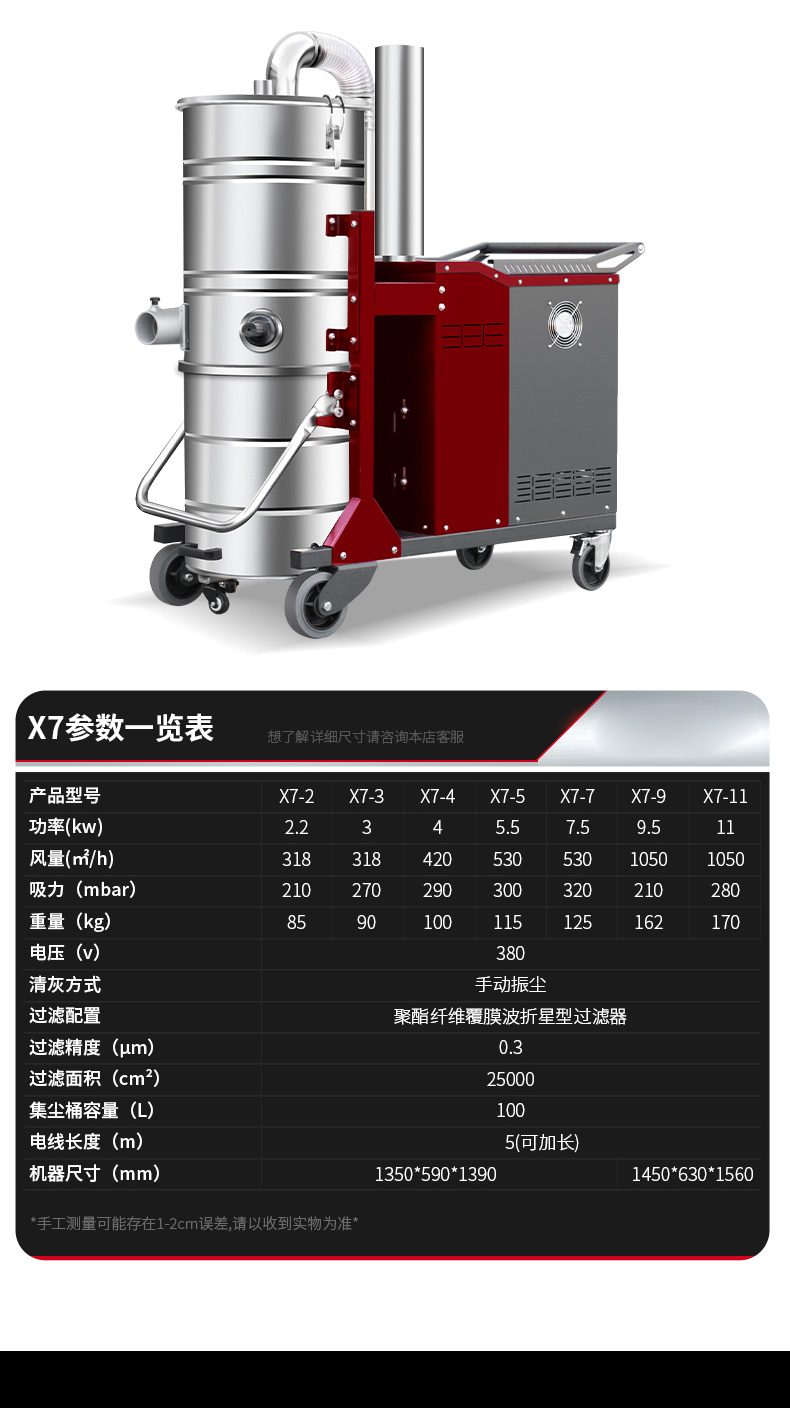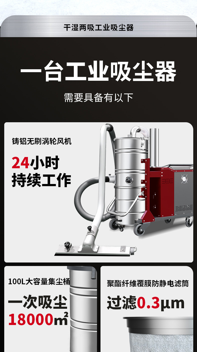 郴州坦洁380V双桶不锈钢工业吸尘器X7系列
