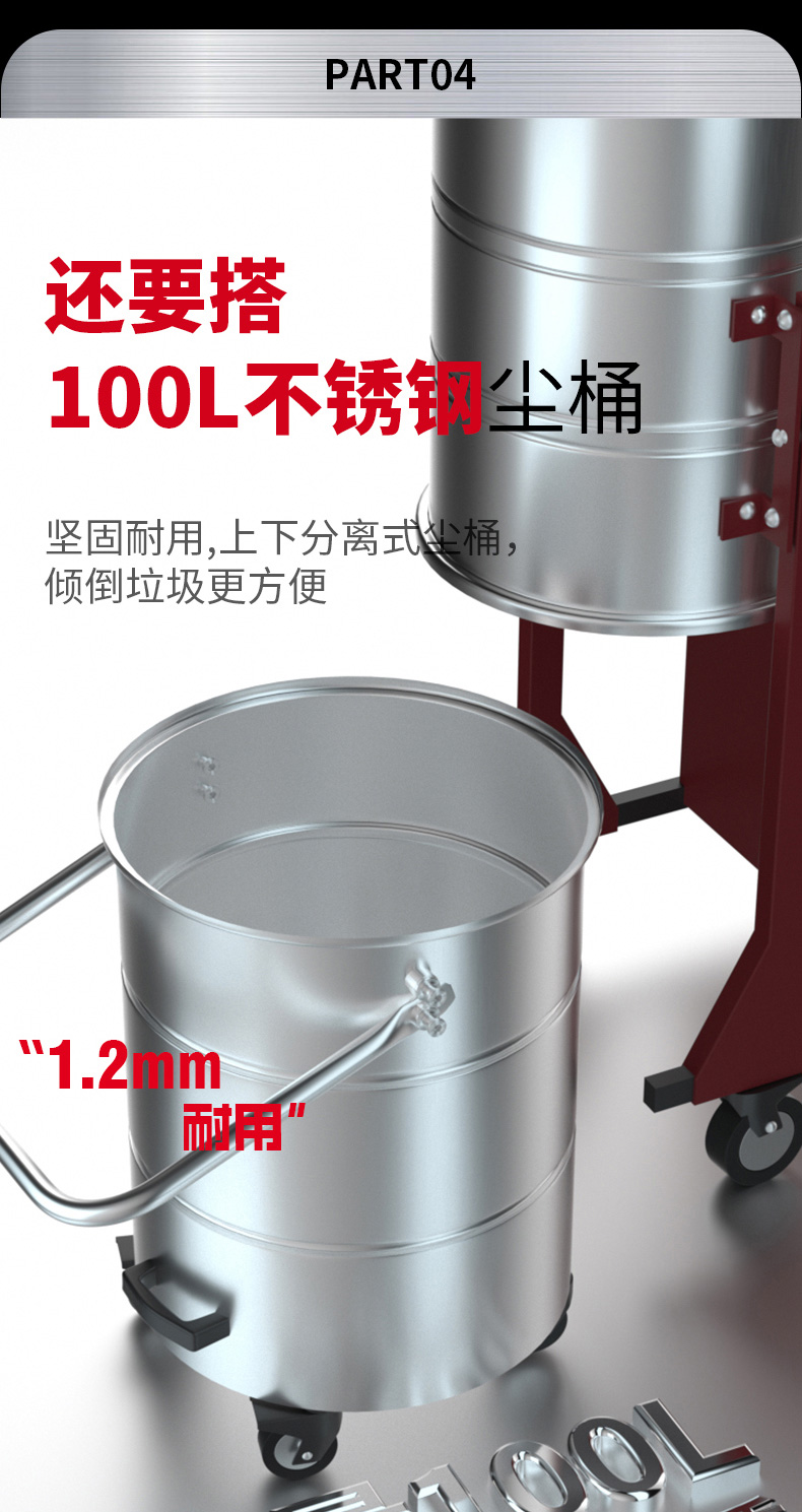 郴州坦洁380V单桶不锈钢工业吸尘器X5系列
